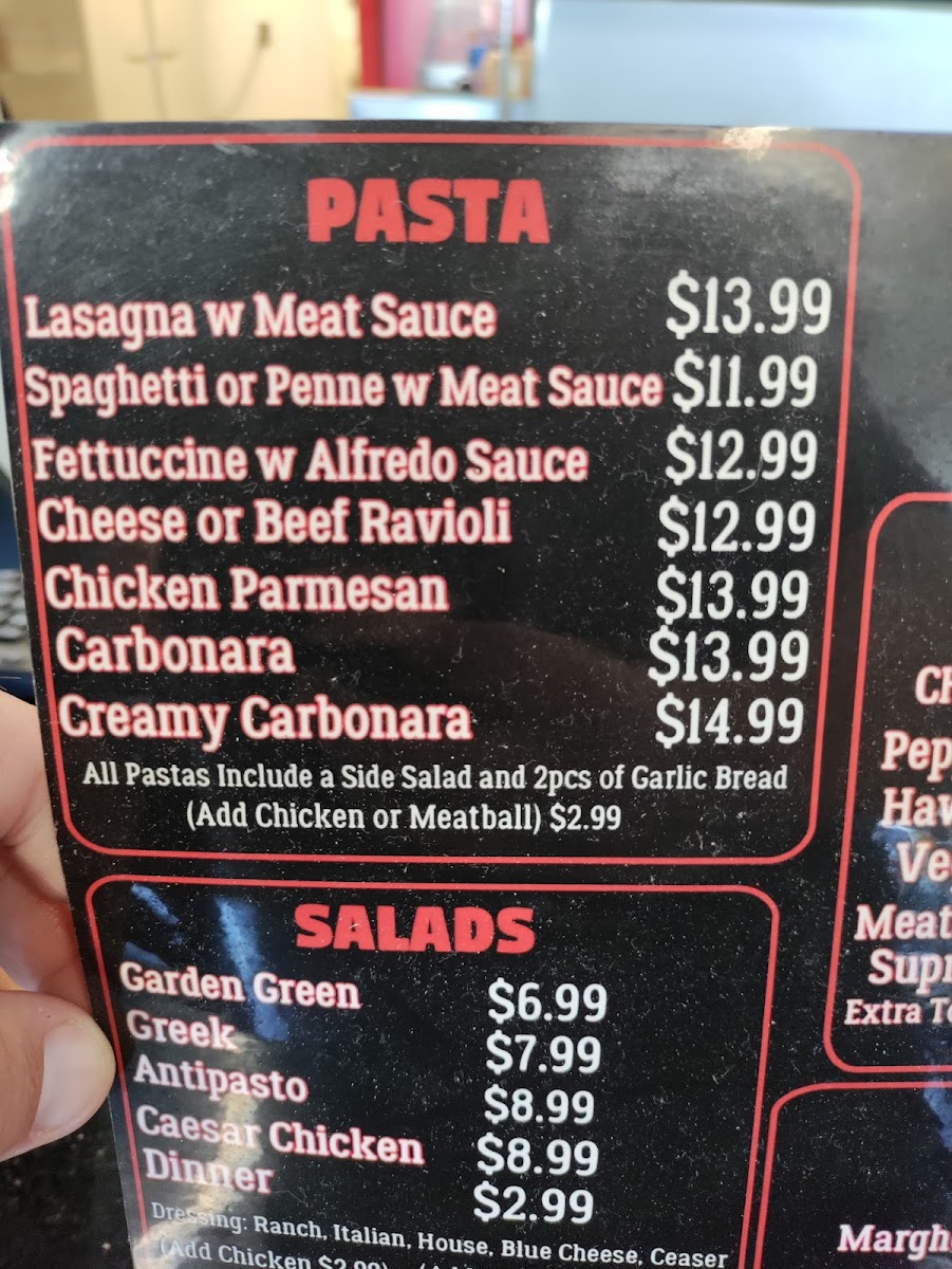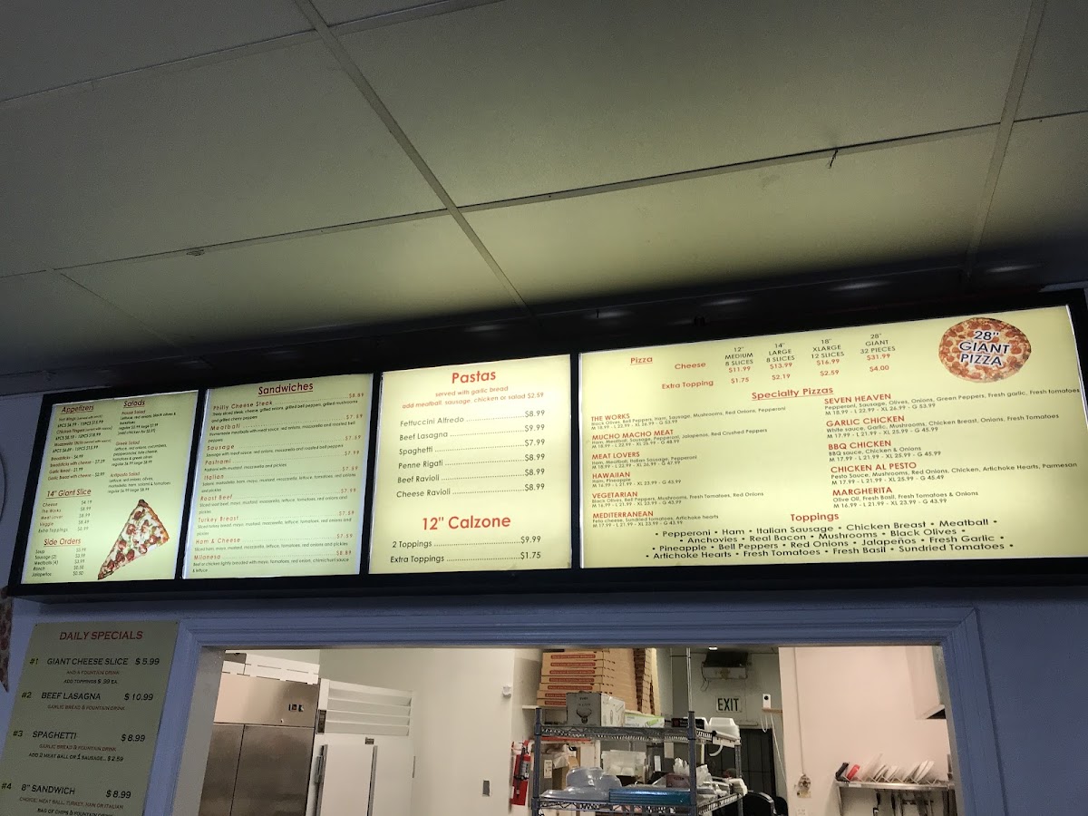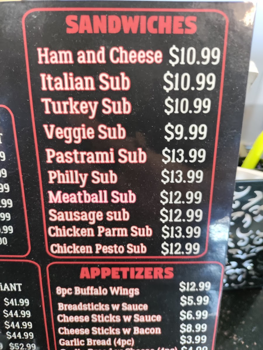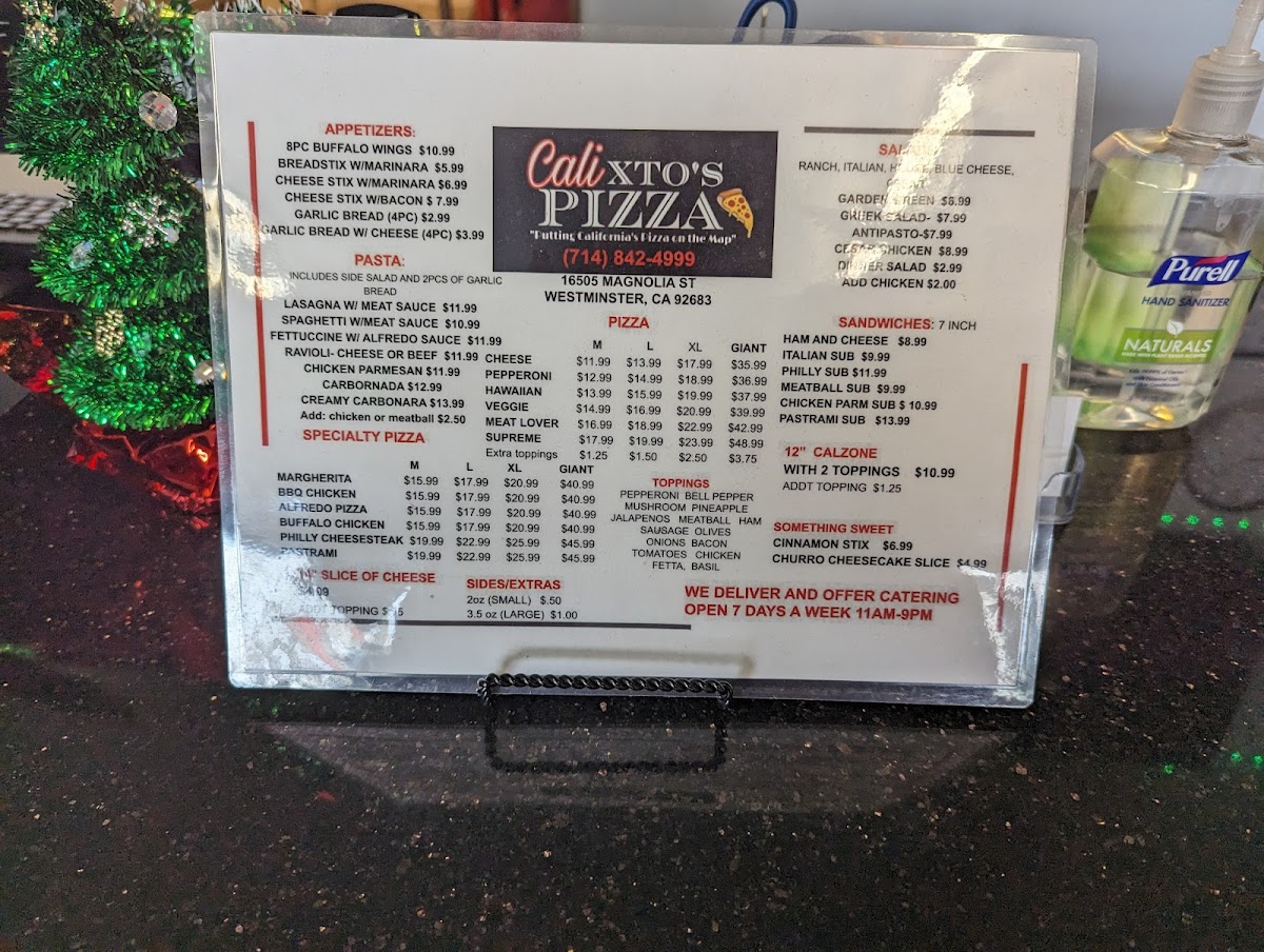 From a reviewer’s perspective, the menu at Calixtos Pizza offers a wide variety of satisfying options, especially for those who enjoy hearty portions and classic comfort foods. The specialty pizzas like Philly Cheesesteak (18" X-Large), Margherita (14" Large), Alfredo Pizza (18" X-Large), Alfredo Pizza (28" Giant), and Pastrami (14" Large) stand out as flavorful choices, while traditional options such as Meat Lover (12" Medium), Veggie (28" Giant), Pepperoni (12" Medium), and Hawaiian (14" Large) provide familiar favorites. Beyond pizza, the menu is well-rounded with salads like Antipasto and Greek Salad, pastas including Chicken Parmesan and Lasagna With Meat Sauce, and satisfying sandwiches such as the Philly Sub and Chicken Pesto Sub. Appetizers like Cheese Stix With Sauce and desserts such as Churro Cheesecake Slice and Cinna-Bites complete the experience, making the menu diverse enough to appeal to both pizza lovers and those looking for a full Italian-American meal.